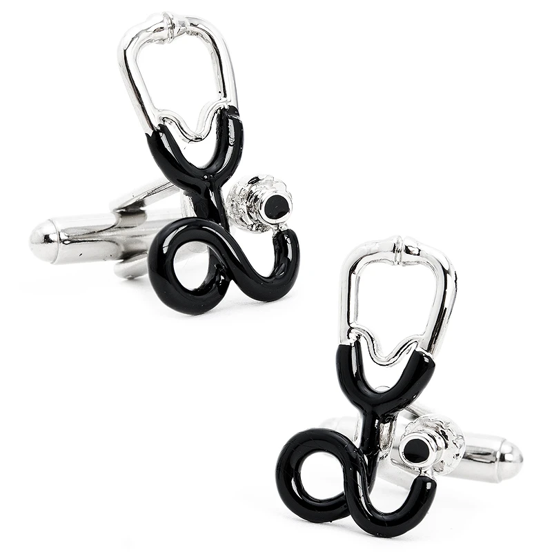These unique cufflinks are designed to look just like a medical stethoscope and are the perfect gift for doctors, nurses or anyone else in the medical field. They are made of nickel plated stainless steel with black enamel accents. They offer intricate details for such a small area, exact miniature replicas of the real thing. An ideal gift for any friend of loved one involved in medicine, these cufflinks come two to a set and are packaged in a gift box.