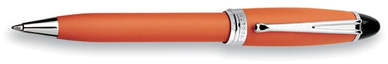 Stand out in a crowd with this orange and silver ballpoint pen by the Aurora pen company. Constructed of solid metal, its the body is coated with a vibrant orange resin and accented with polished silver. It has a ballpoint tip that wrIt’s easily in smooth, clean lines. The cap has a polished black tip at one end and a polished silver ring around the base. It has a pocket clip that includes Aurora’s signature “Y” clip design. Packaged in a gift box, it makes for an ideal gift for any occasion.
